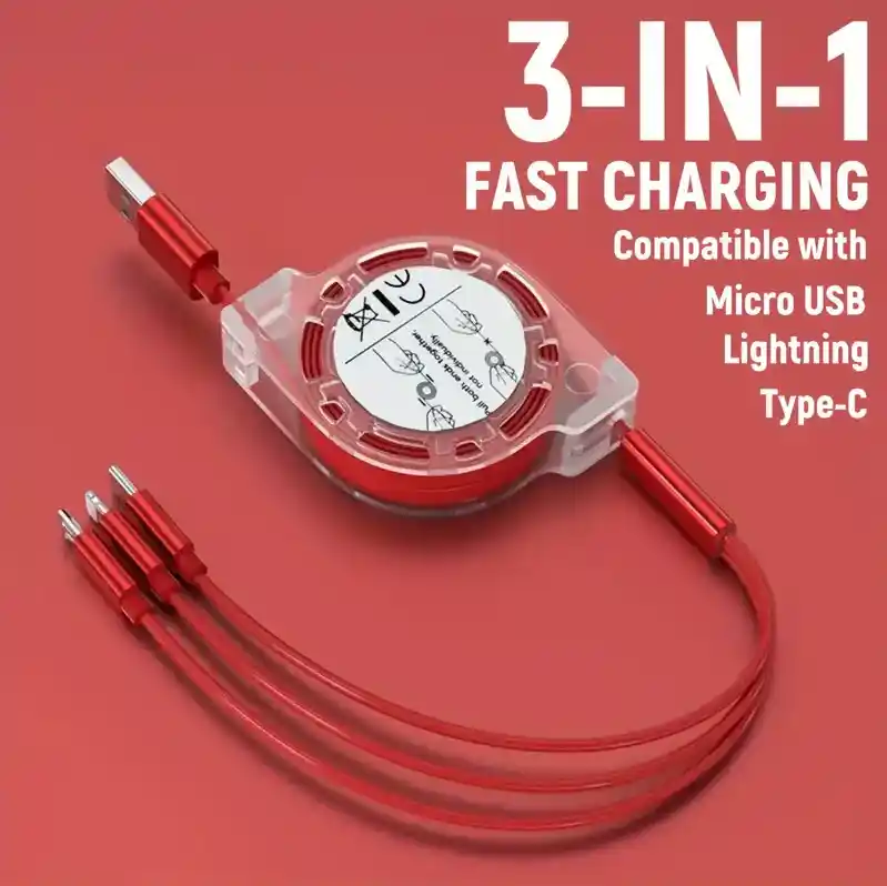 ๐ 3-in-1 Retractable Fast Charging Cable โ The All-in-One Power Solution!