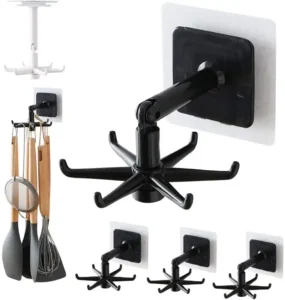 Keep your kitchen, bathroom, or workspace neat and organized with this multi-purpose rotating hook rack. Designed for modern homes, it features a 360° swivel design and strong adhesive backing, making it easy to install—no drilling or damage needed!