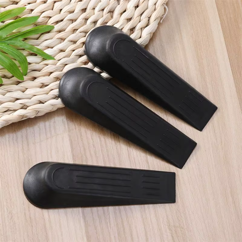 This item is door block wedges. They are made from a SGS approved, flexible plastic material which performs very well on all surfaces including carpet, tiles, concrete and timber floors. Unlike other hard plastic, wooden, aluminum or metal stops our stoppers don’t and wont scratch your floors. No more annoying toxic smells either as the plastic used is odorless.