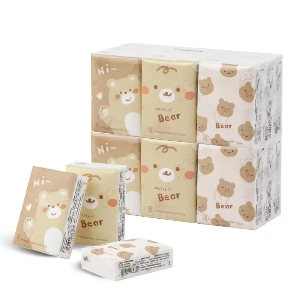 Stay fresh and prepared wherever you go with this adorable bear-themed pocket tissue pack. Each bundle contains 8 individually wrapped packs, making it easy to carry in your bag, car, or pocket. Soft, strong, and gentle on skin – perfect for daily use.