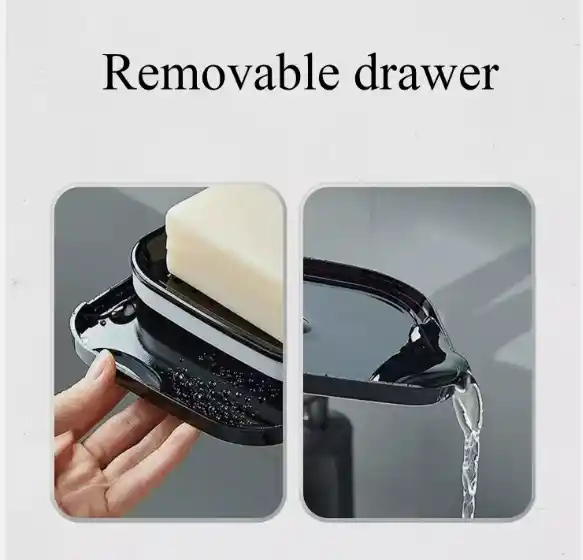 The holder’s smart design includes a built-in drain to prevent water from pooling, keeping your soap dry and extending its life. Its sleek black and white design adds a modern touch to any decor, while the durable, easy-to-clean material ensures long-lasting use.