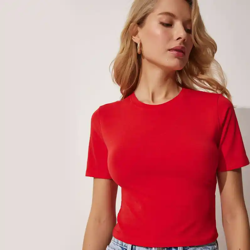 Make a statement in this vibrant red crop top. Designed for a modern and stylish look, this piece is easy to mix and match with any high-waisted bottoms. Whether you’re heading out with friends or just want to add a pop of color to your day, this top is a must-have for your wardrobe.