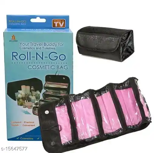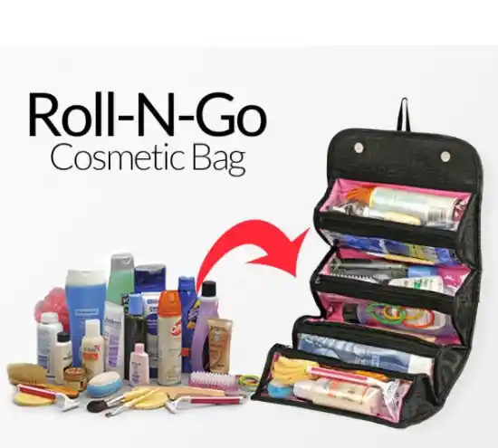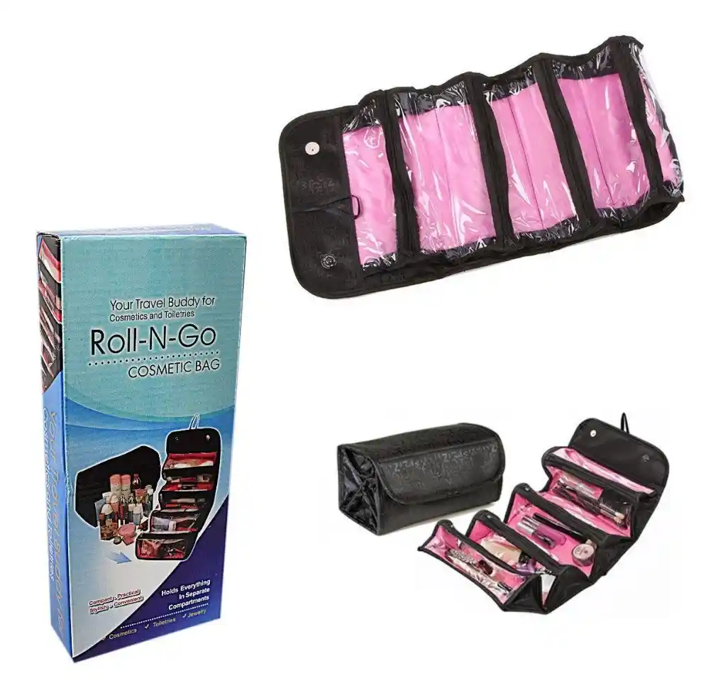 Stay organized on the go with the Roll-N-Go Cosmetic Bag – the ultimate storage solution for cosmetics, jewelry, and more