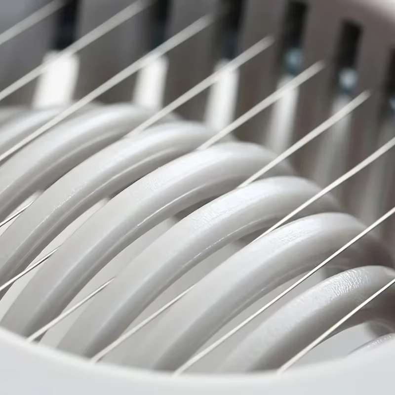 【Easy to clean and storage】Wash by water or dishwasher to remove the the food scraps easily, the shape and material of egg slicer is very compact that making it portable and easy for storage. Hanging it on the wall or laying it horizontally or vertically in the drawer is available to save your kitchen space.