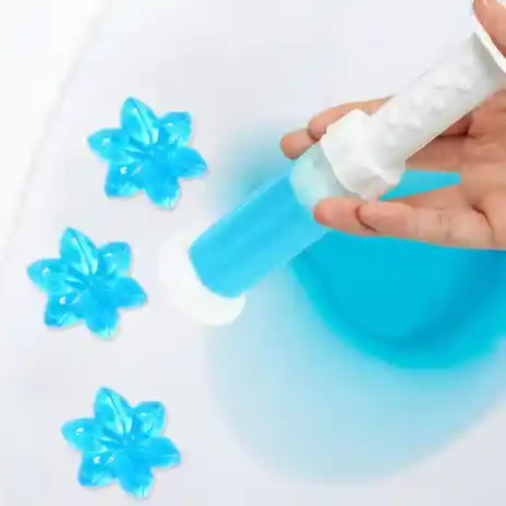 Simply use the included applicator to stamp a fresh gel flower onto the inside of your toilet bowl. With every flush, the gel releases a pleasant fragrance and a powerful cleaning agent that helps prevent stains and limescale buildup.